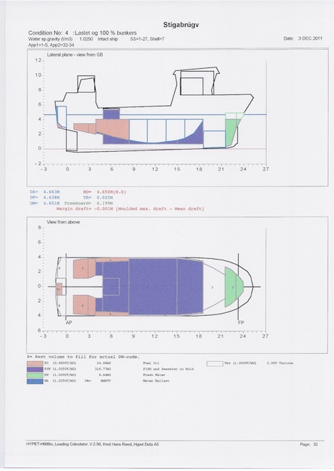 bb. Stígabrúgv er brunnbátur til laksaflutnings. Serlig krøv verða sett til stabilitet á brunnbátum, av tí at teir sigla við flótandi last og er hetta sera vandamikið, serliga í fylli- og tømifasunum, har fríar veskuyvirflatur ógvusliga gera um seg.